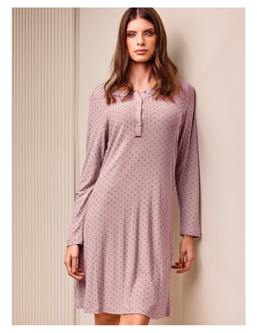 Spavaćica dugih rukava talijanskog brenda Lormar iz kolekcije Esprit. Izrađena od mekane, teške viskoze s uzorkom točkica ušivenih žakard tehnikom.