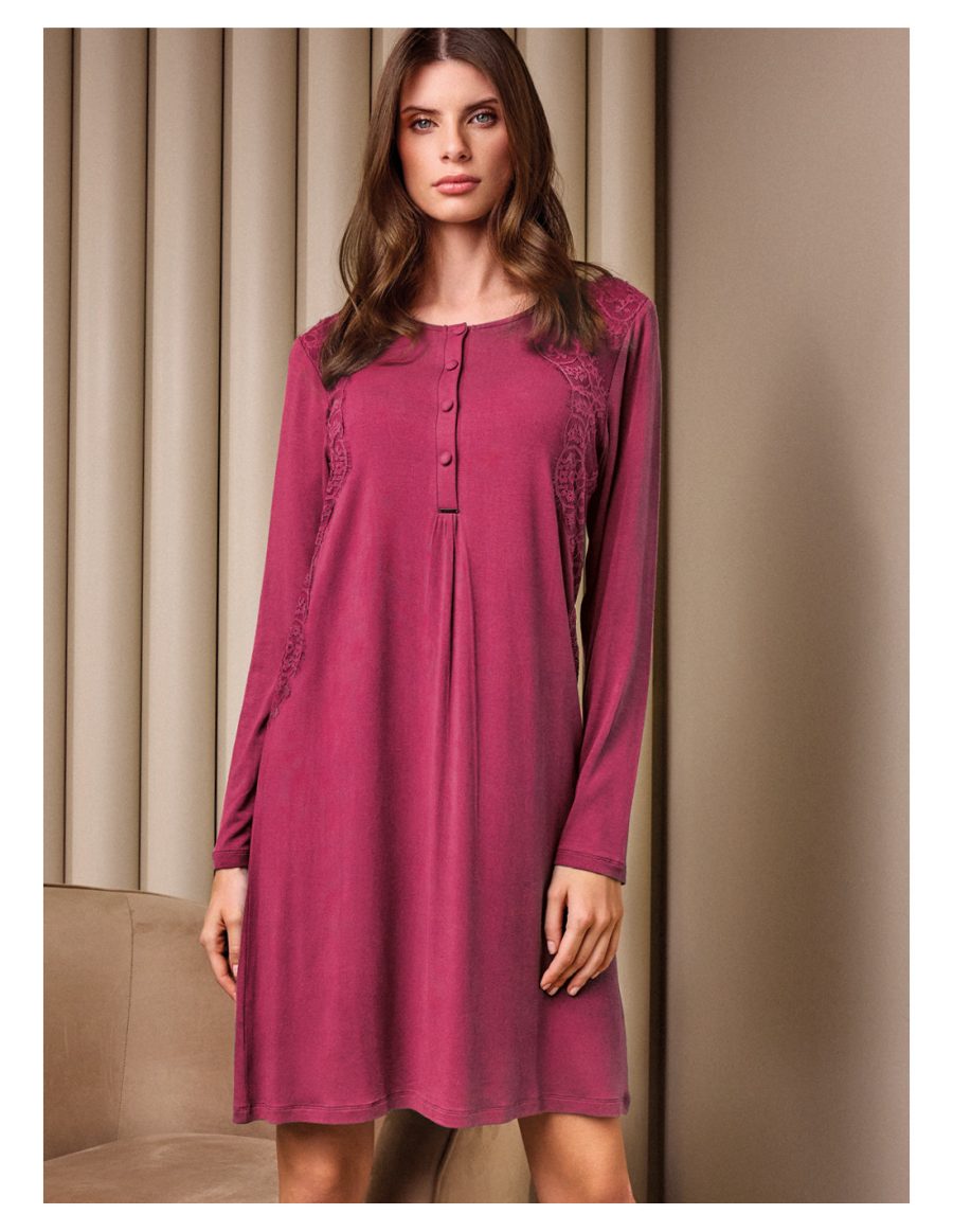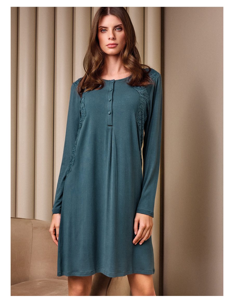 Spavaćica dugih rukava talijanskog brenda Lormar iz kolekcije Manhattan. Izrađena od mekane, teške viskoze te profinjene čipke.